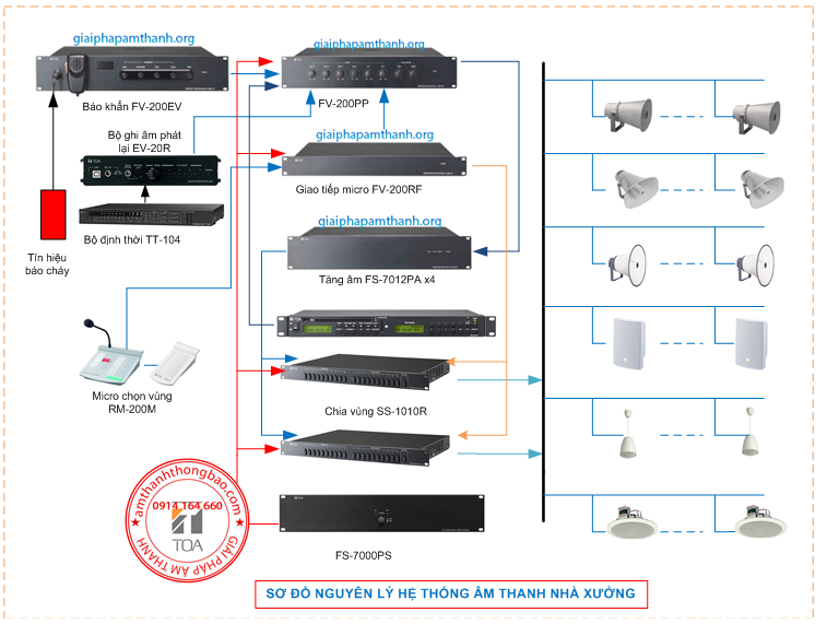 Các thiết bị cần trang bị cho hệ thống âm thanh nhà xưởng gồm có như hình dưới: